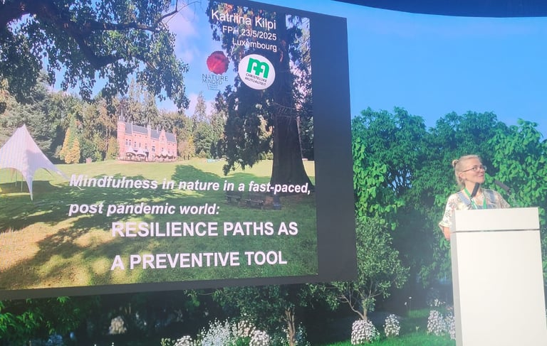 Resilience trails that include psychological exercises placed strategically in the environment to support, restoration and resilience. Every resilience path reflects a different theme defined in collaboration with the surrounding nature and the partners in the project. Our resilience paths so far include: